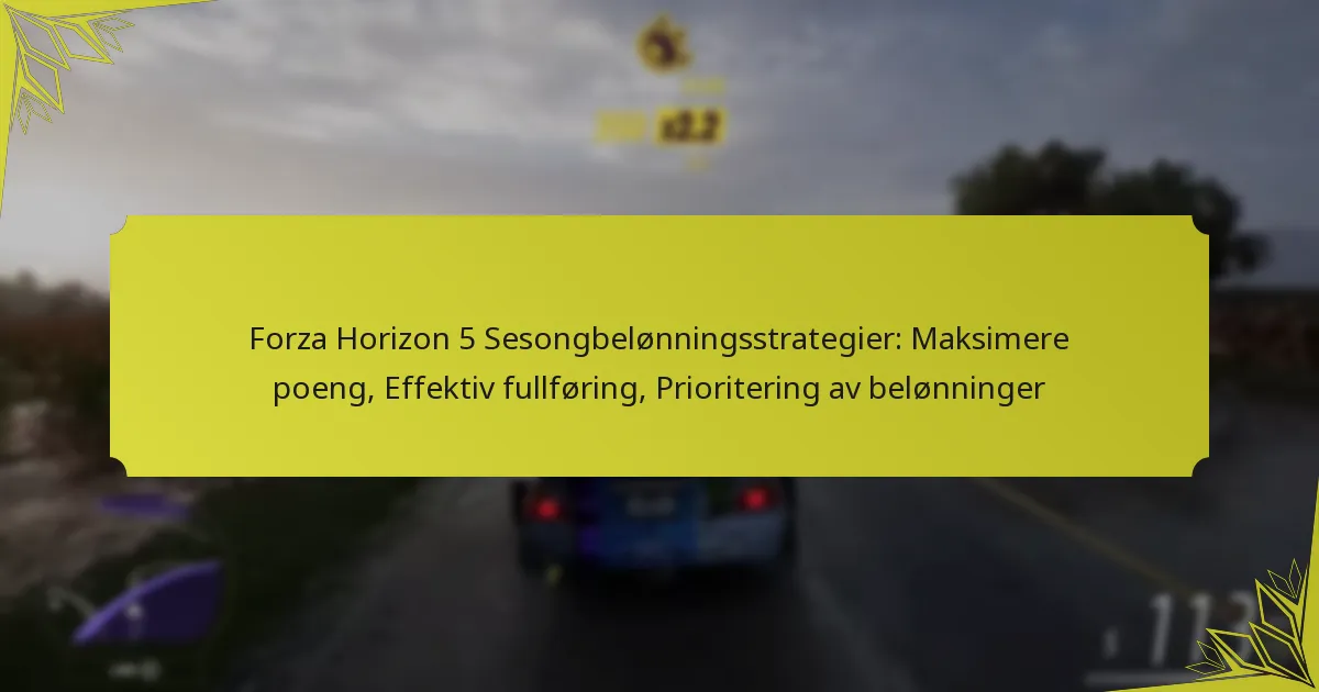 For å maksimere sesongbelønningene dine i Forza Horizon 5, fokuser på å fullføre en rekke arrangementer og utfordringer som gir høye poeng. Å delta i sesongaktiviteter konsekvent og prioritere de med bonusmultiplikatorer kan betydelig øke den totale inntjeningen din.